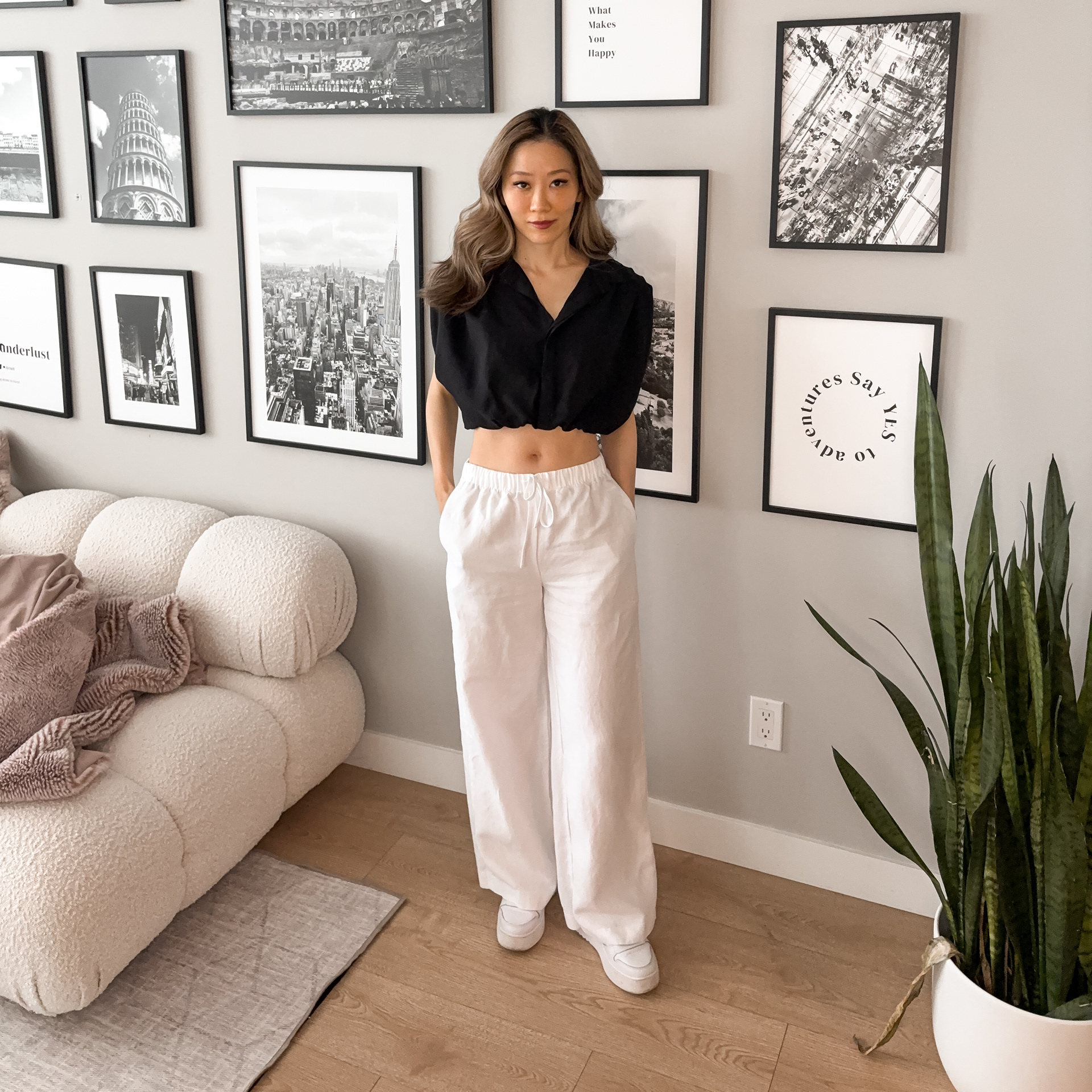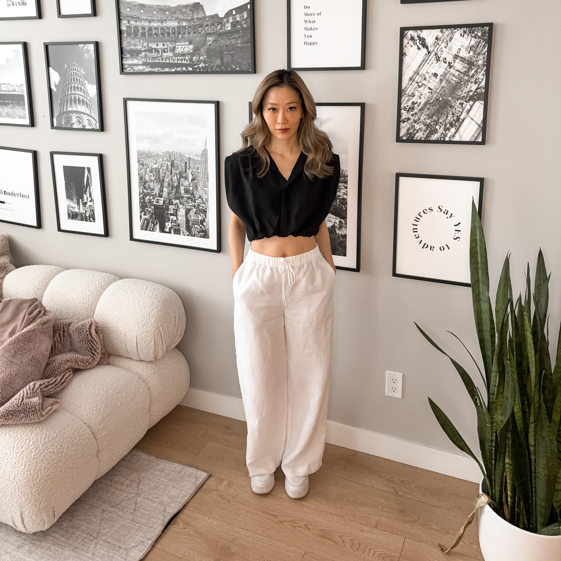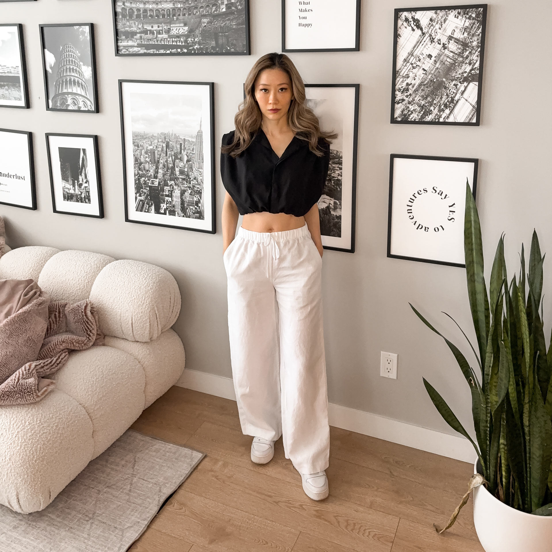 Bold in its simplicity. The cropped silhouette and flowy pants play with proportions for an understated statement.
